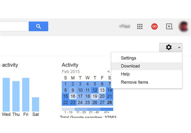 To do this, users need to go to their Google Account history, and then click the gear button and selct "download."