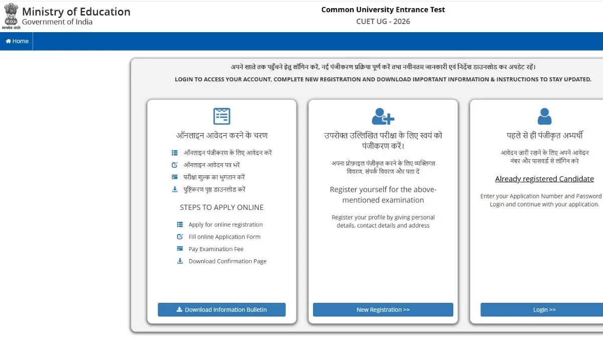 CUET UG registration 2026: CUET UG registration 2026 will be closed on the official website- cuet.nta.nic.in today, February 4. The last date to pay CUET UG application fee is February 7. Know how to apply for CUET UG 2026 on the official website- cuet.nta.nic.in.