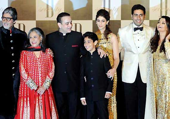 Amitabh, dressed in a black velvet outfit, came with his family - wife Jaya Bachchan, son Abhishek, daughter Shweta, daughter-in-law Aishwarya Rai - and he too walked the red carpet with live orchestra playing hit numbers from his films.