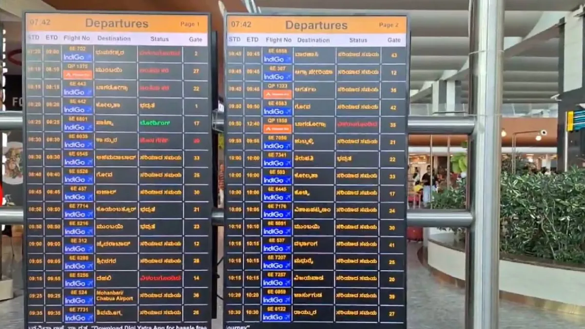 In a video posted on X last week, the user showed digital screens at the airport displaying flight numbers, destinations, statuses, and gate numbers in only English and Kannada.