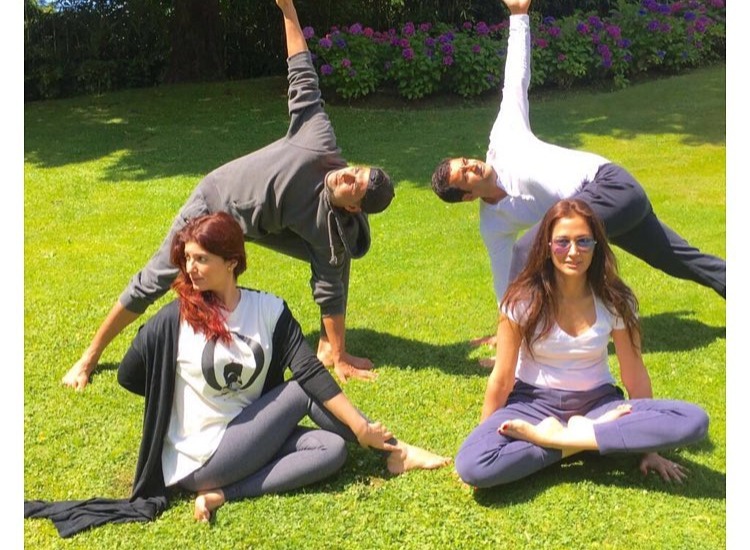 Well, you must have heard that the family that exercises together stays together. Twinkle shared a picture on her Instagram in which she is seen doing yoga with Akshay and some friends on the occasion of Yoda Day.