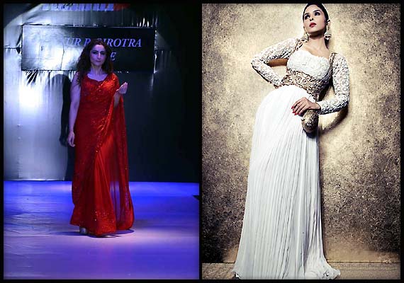 Designer Mayyur Girotra's new collection offers traditional wear as well as western outfits in shades of red and more for women.