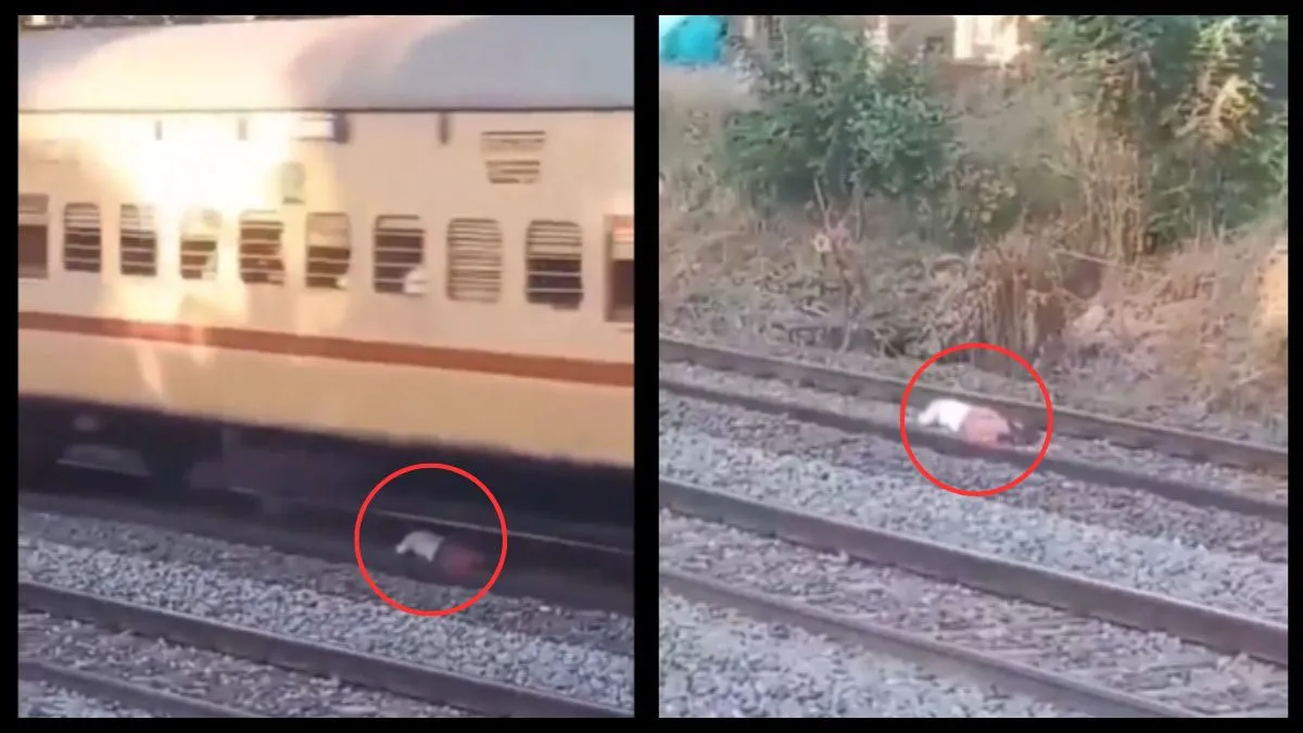 A shocking video has emerged from Kannur district in Kerala, showing a man narrowly escaping death as an oncoming train sped over him. In the viral footage, the man is seen lying on the tracks, remaining still and crouched with his head down as the train passes just inches above him. Miraculously, he gets up unharmed and walks away after the train passes.
