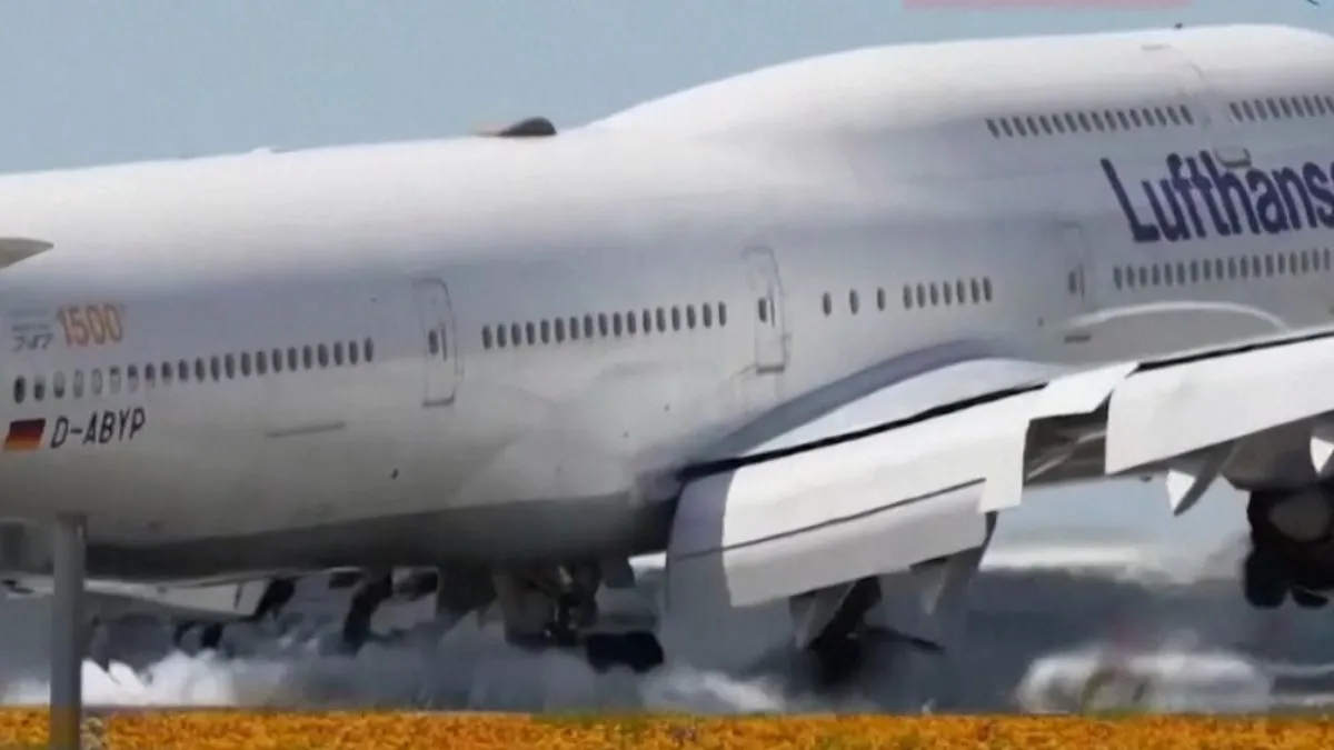 Lufthansa plane bounce off runway at Los Angeles airport, hard landing caught on live stream I WATCH VIDEO