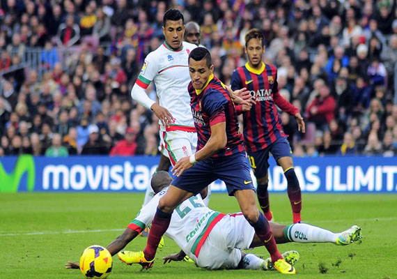 Barcelona kicked off with several key players, including Victor Valdes, Xavi Hernandez, Dani Alves and Leo Messi out through injury and coach Tata Martinez included Alexis Sanchez, Neymar and Pedro Rodriguez in his side while Marc Bartra, recently capped by Spain, was also included in the heart of the Barca defence.