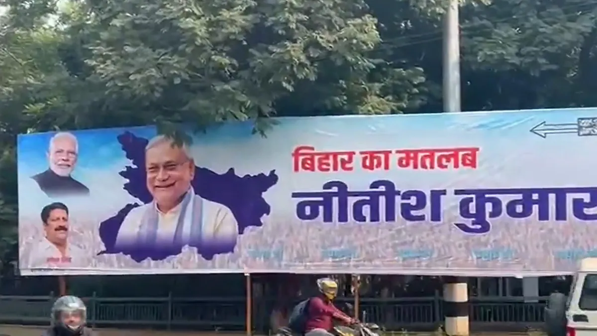 Various posters with ‘Bihar Ka Matlab Nitish Kumar’ appeared near Bihar Chief Minister Nitish Kumar’s residence in Patna as NDA is leading on 195 seats as per the EC trends. JD(U) is leading on 44 seats. Another striking poster featuring Bihar Chief Minister Nitish Kumar standing beside a tiger, captioned boldly 'tiger abhi zinda hai' (tiger is alive), also appeared outside his residence on Friday.