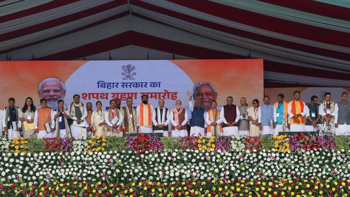 A total of 27 leaders, including Chief Minister Nitish Kumar, Samrat Choudhary, and Vijay Kumar Sinha, took oath at Patna's Gandhi Maidan. Among the main NDA constituents, the BJP and JD(U) got 14 and 8 ministerial berths, respectively, excluding the Chief Minister. Additionally, one berth each was allotted to the Rashtriya Lok Morcha (RLM) and the Hindustani Awam Morcha (Secular) [HAM(S)], while two positions were given to Chirag Paswan’s Lok Janshakti Party (Ram Vilas).