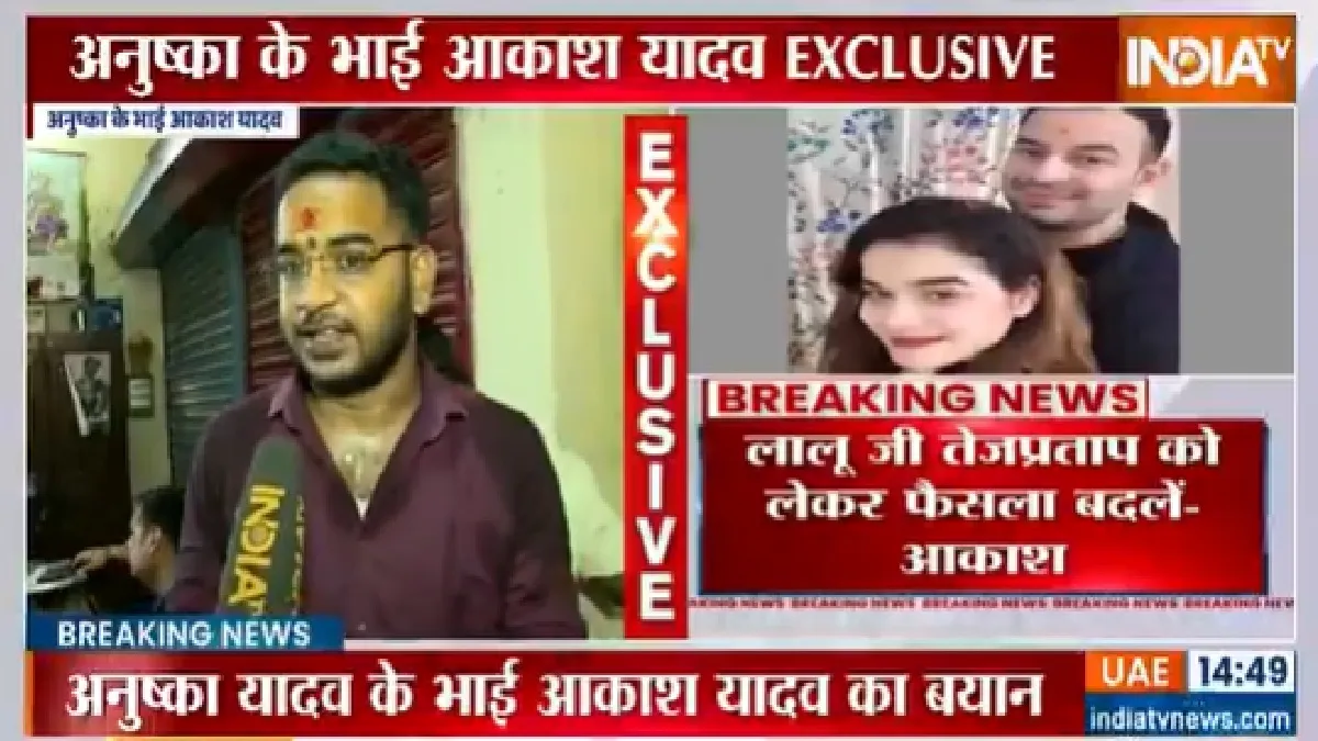 The political storm surrounding Tej Pratap Yadav intensified on Monday as the family of Anushka Yadav, the woman Tej Pratap recently claimed to have been in a long-term relationship with, broke its silence. Her brother, Akash Yadav, accused the Yadav family of betrayal and issued a sharp warning to RJD chief Lalu Prasad Yadav. Speaking to reporters, Akash said, “We are being wronged. I will fight for my younger sister’s dignity. If Tej Pratap goes back on his words under family pressure, it will not be good for Lalu ji.” This marks the first public reaction from Anushka’s side after Tej Pratap’s recent social media post alleging a 12-year relationship with her, despite still being legally married to Aishwarya Rai.