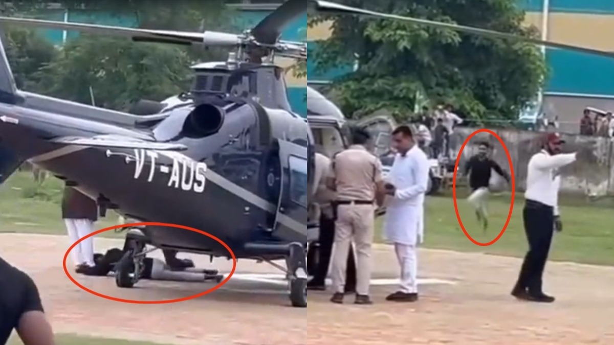 A major security lapse involving the Leader of Opposition in the Bihar Assembly and RJD leader Tejashwi Yadav came to light in Muzaffarpur district. The incident took place on Saturday as Yadav was preparing to depart by helicopter when a young man suddenly broke through the security cordon, ran onto the runway, and fell at his feet.