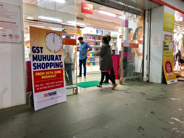 At 12:00 am on July 1, when the GST was launched from the Central Hall of Parliament, Big Bazaar opened its doors for two hours till 2 am, offering heavy discount and cashback offers to its customers. The sale, termed as "GST Muhurat Offer" by the retailer, was a huge success as people thronged the stores in huge numbers. The discount offer continues on its products where the company claimed that customer can save up to 22 per cent.