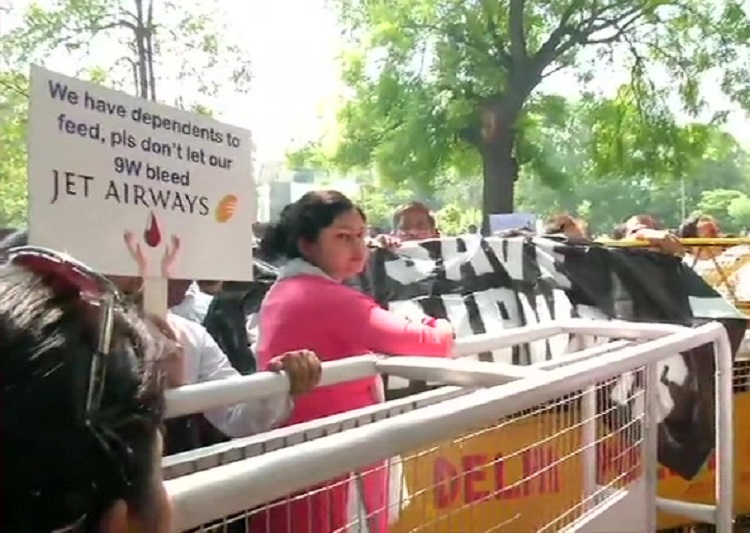After facing the prospect of job loss, Jet Airways employees have now turned to the government for help. In an attempt to highlight their situation, seeking an action to protect their jobs, the airline staff from across various departments took to the streets on Tuesday and were seen protesting in front of Rajiv Gandhi Bhawan that houses the Civil Aviation Ministry.