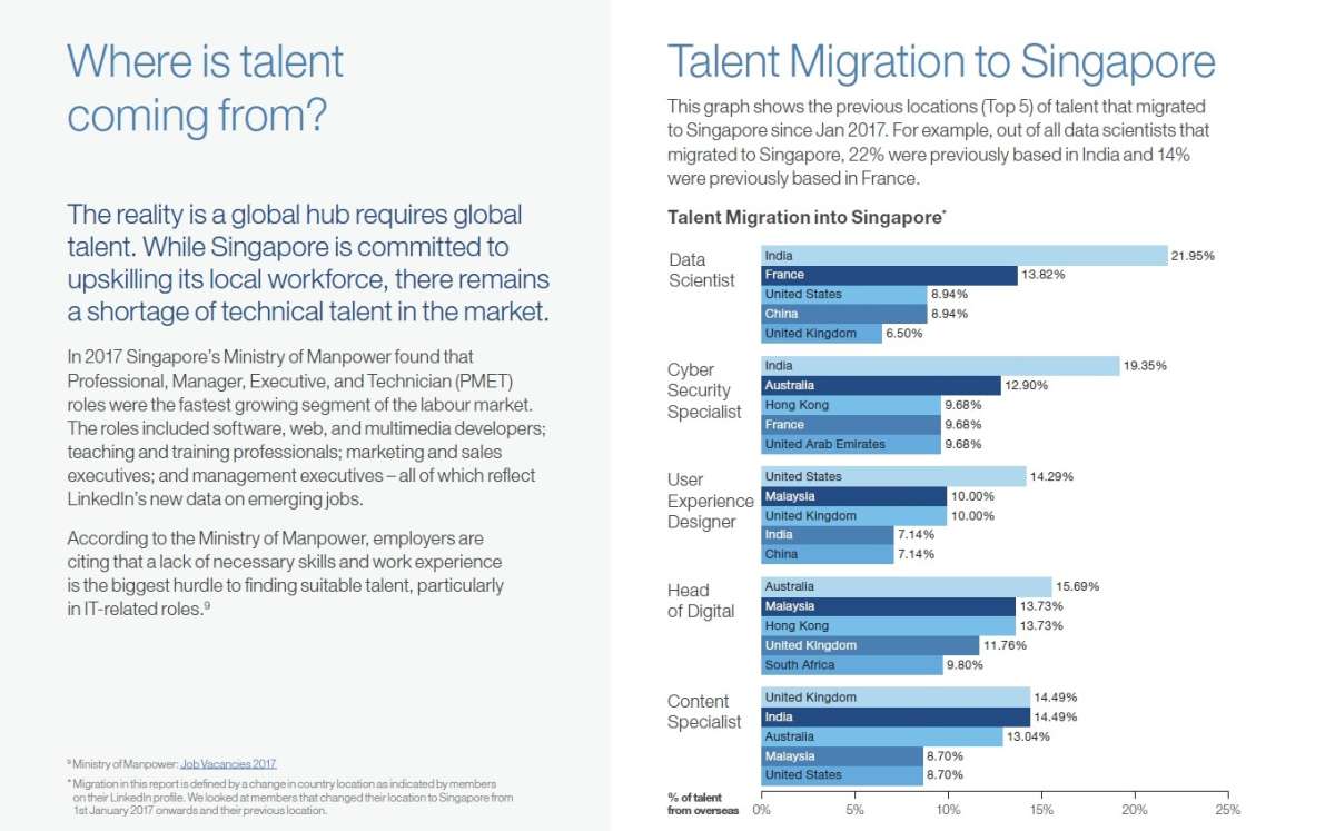 The LinkedIn report identifies and compares the emerging jobs and skills required for each job. It's analysis is based on the data collected from year 2013 to 2017 from the accounts of 2-million Singapore-based LinkedIn users.