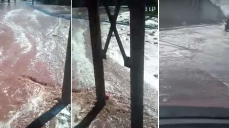 Video footage broadcast on state television Tuesday showed torrents of reddish-coloured juice flowing through the streets as stunned drivers passed by in their cars.