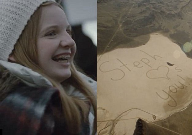 13-year-old Stephanie drew the note on paper and with the help of Hyundai got it copied onto a large land surface.