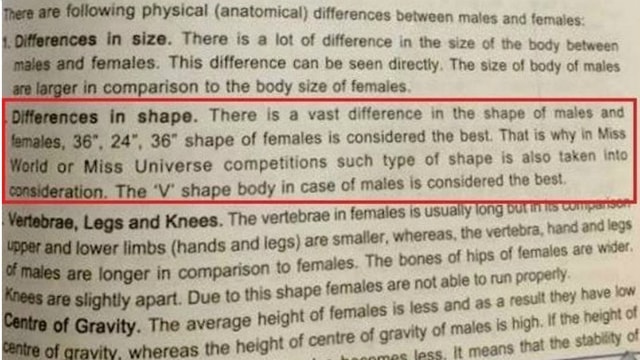 This textbook has, undoubtedly, done his farthest best to promote body-shaming among young minds. The book also cares to comment why the women aren’t able to run properly because of their wider hip bones and knees being slightly apart. This single excerpt from the book has totally slammed the fact that PT Usha, a woman, has brought many accolades to the country for her tremendous speed at ‘running’.