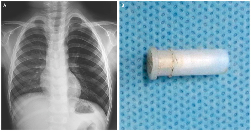 When doctors took an X-ray of his chest, they found his left lung to be has some object blocking the air passage. His parents reported that the kid had been playing with a whistle before the cough began.