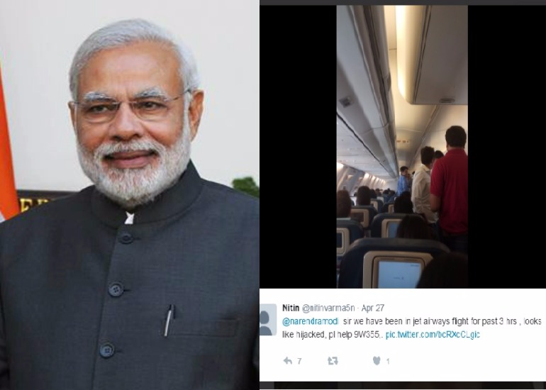 The passenger, who was travelling from Mumbai, tweeted in the morning saying, "@narendramodi sir we have been in jet airways flight for past 3 hrs, looks like hijacked, pl help 9W355".