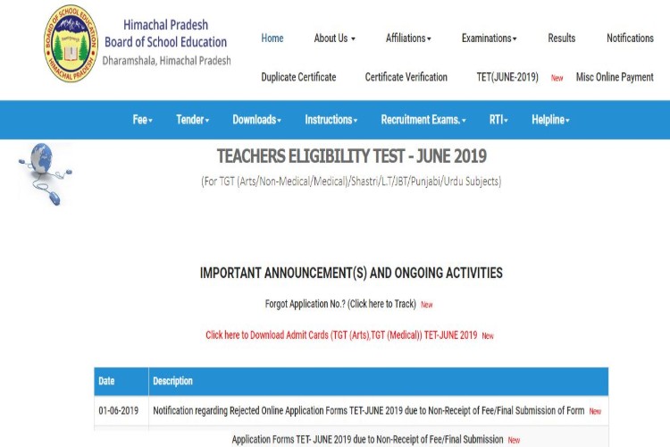 HP TET Admit Card 2019 | Himachal Pradesh Board of Secondary Education (HPBOSE) has released the HP TET 2019 Admit Card today for Arts and Medical subject exams. Earlier the board had released the HP TET Admit Card 2019 for Non-medical, LT, JBT and Shastri exam. To download the HP TET 2019 Admit Card for Medical exams and HP TET 2019 Admit Card for Arts exams, candidates will have to visit the official website -- hpbose.org.Candidates must know that while downloading the their HP TET Admit Card 2019, they will be required to enter Application Number and Date of Birth and thus it is advised to keep credentials handy while loging in.