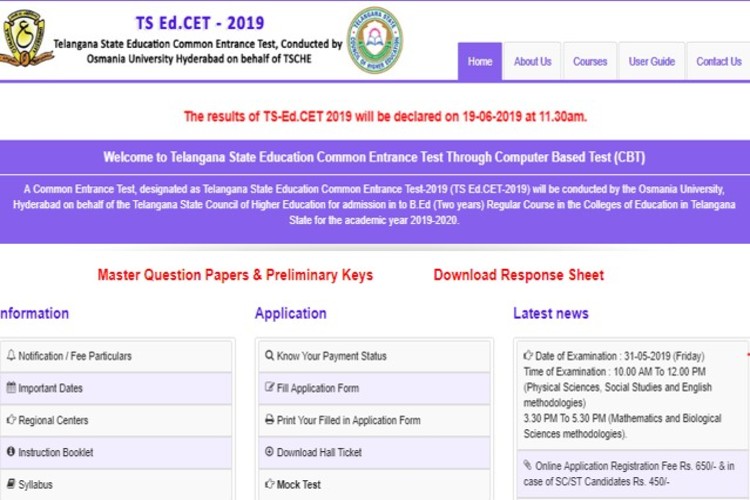 TS EdCET Result 2019 | The Osmania University has declared the TS EdCET Result 2019 i.e Telangana Common Entrance Test Results for Bachelor of Education EdCET at the official website at the website -- edcet.tsche.ac.in. Aspirants can check their TS EdCET Result 2019 on the official web portal -- edcet.tsche.ac.in.About TS EdCET 2019: