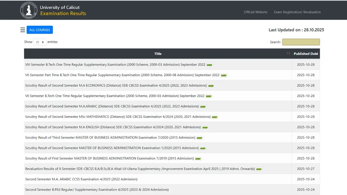 For details on Calicut University BTech, MSc, MA, MBA semester-wise supplementary, revaluation result 2025, please visit the official website- uoc.ac.in.