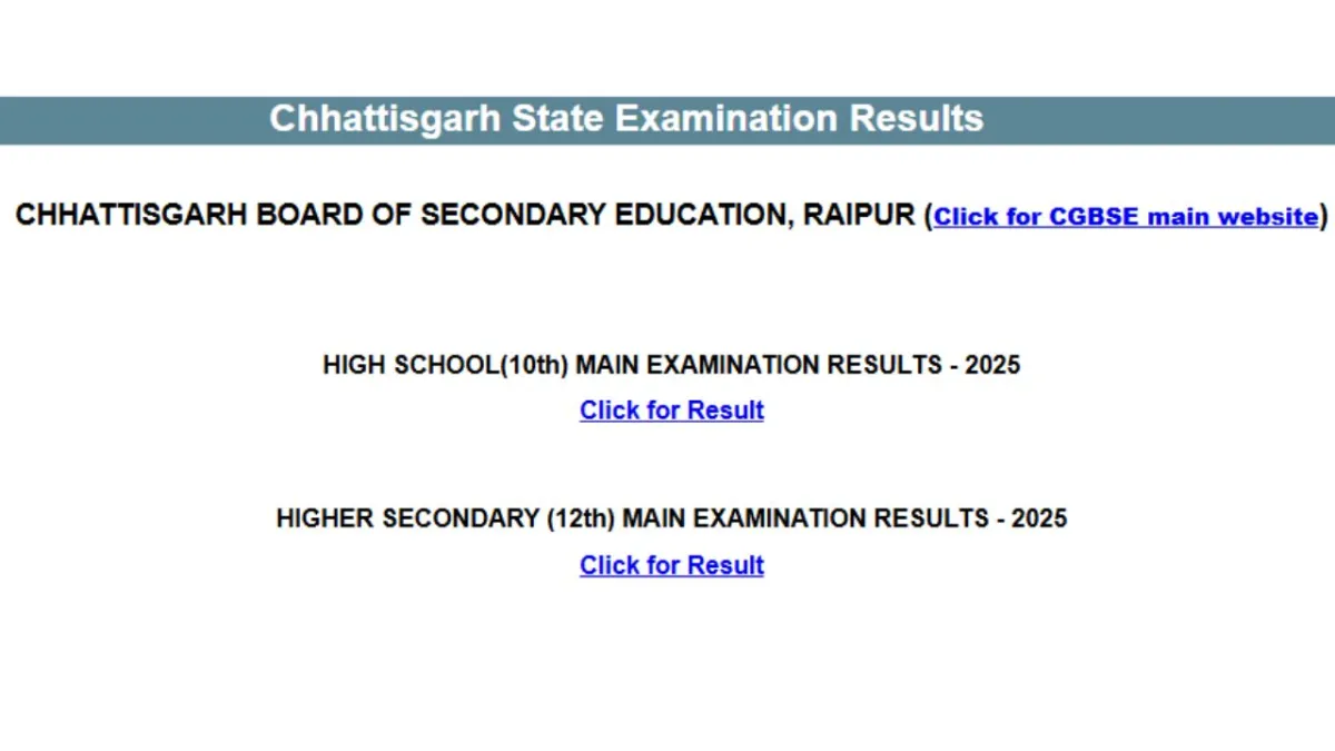 The Chhattisgarh Board of Secondary Education (CGBSE) has announced the CG Board CGBSE 10th, 12th Result 2025. Students who appeared in the 10th and 12th exams for the academic year 2024–25 can download their marksheets using their roll number, date of birth and other details on the login page. The CGBSE Higher Secondary Result 2025" or "CGBSE High School Result 2025 links have been activated on the official websites, cgbse.nic.in and results.cg.nic.in. Students can check their results by entering key information in the login fields. This year, CGBSE Class 10 exams were held from March 3 to 24, 2025, while the Class 12 exams took place from March 1 to 28, 2025.