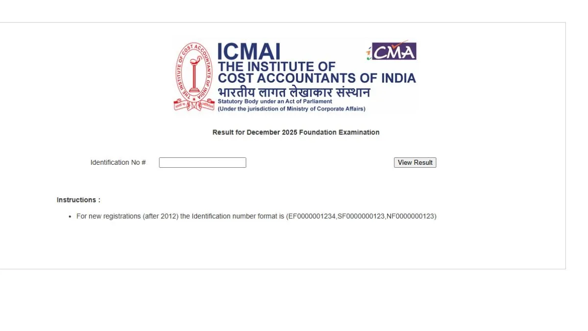 The Institute of Cost Accountants of India (ICMAI) has declared the result for the CMA Foundation exam (Syllabus 2022). The candidates who had appeared for the CMA Foundation December exam 2025 can check the result on the official website- icmai.in. The ICMAI CMA Foundation December scorecard PDF login credential is Identification number.
