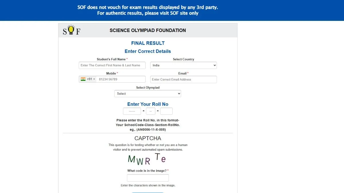 The Science Olympiad Foundation (SOF) has announced the National Science Olympiad (NSO) Level 1 result 2026. The candidates who had appeared for the SOF NSO level one exam 2026 can check the result on the official website- results.sofworld.org. The SOF NSO tier one scorecard PDF login credentials are- student's name, mobile, email. The NSO level one exam was held on November 13, 27 and December 11, 2025.