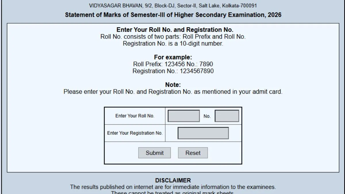 WBCHSE HS third semester marksheet PDF: Steps to download at result.wb.gov.in