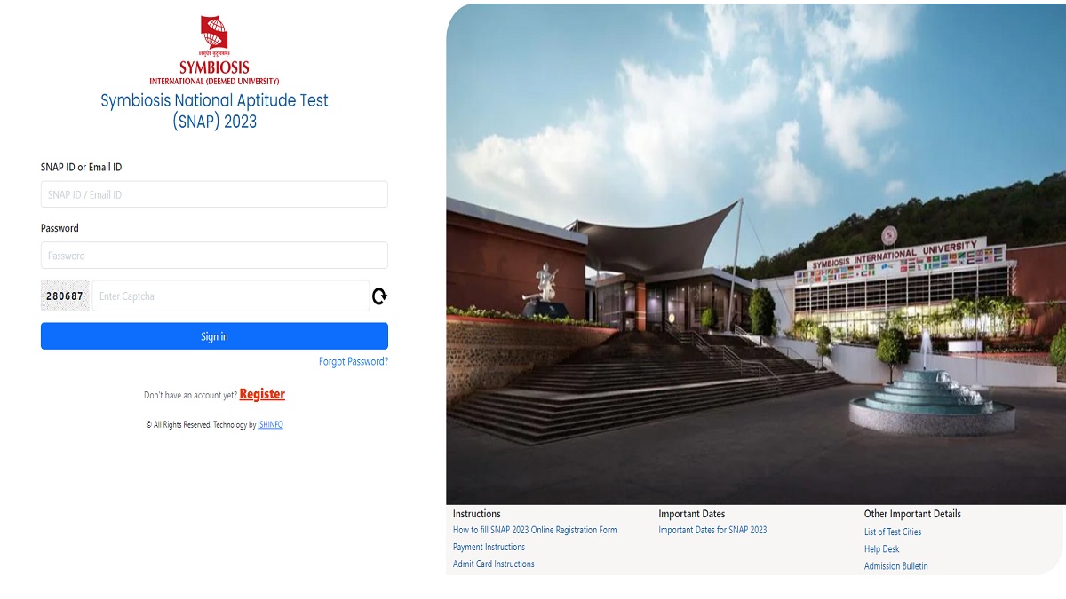 SNAP 2023 Registration: Symbiosis University is conducting registrations for Symbiosis National Aptitude Test (SNAP) 2023. Candidates willing to appear for SNAP 2023 examination for admission to MBA programmes offered by Symbiosis Institute of International Business (SIIB), Pune and other institutes can apply online through the official website-- snaptest.org.