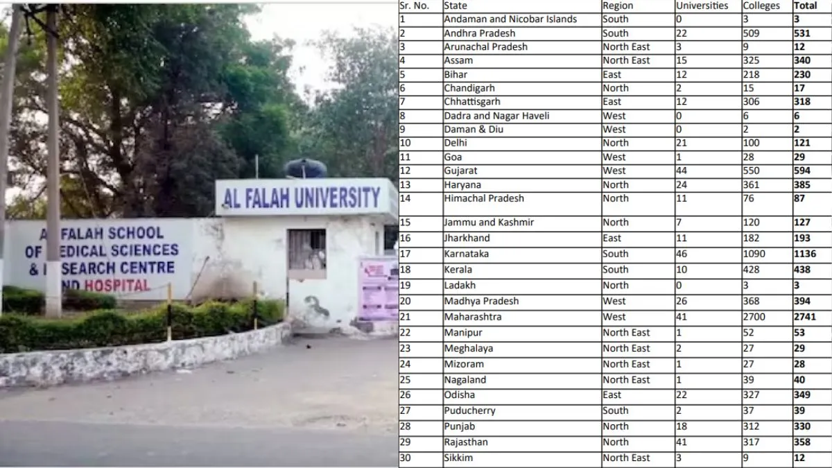 Meanwhile, it's not Al-Falah University; around 50 per cent of universities in India do not have valid NAAC accreditation. UGC in 2023 mentioned that India has a total of 1,074 universities, which includes 56 central universities, 460 state universities, 430 private universities, and 128 deemed to be universities.