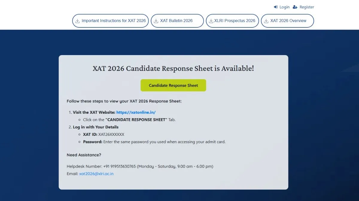 The Xavier Aptitude Test (XAT) 2026 response sheet has been released, the candidates can check and download XAT response sheet 2026 on the XAT portal. To download XAT response sheet 2026, candidates need to visit the official website- xatonline.in and click on XAT response sheet 2026 PDF link. Enter login credentials- Password, Date of Birth. XAT response sheet PDF will be available for download on the screen, save XAT answer key 2026 PDF and take a hard copy out of it.