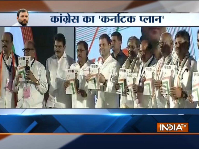 Congress president Rahul Gandhi, who is on his seventh leg of campaigning in Karnataka, today released the party's manifesto for the Assembly polls scheduled to be held across the state on May 12. Karnataka Chief Minister Siddaramaiah and other senior Congress leaders were also present in Mangaluru on this occasion.