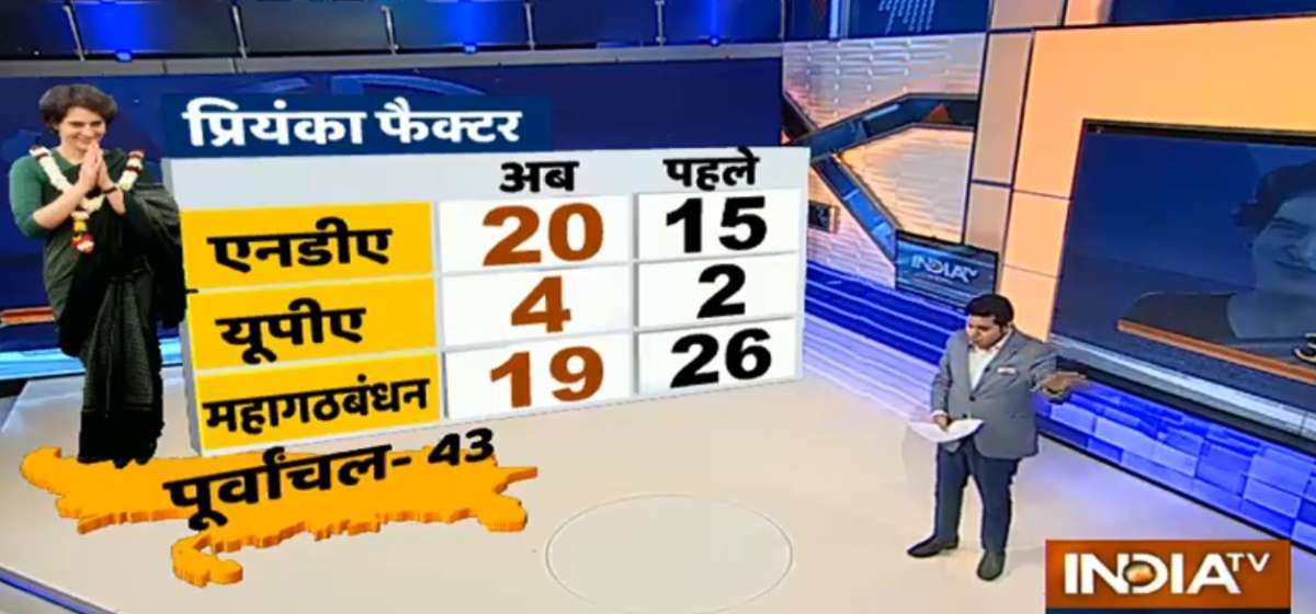 The survey shows Congress clearly benefits from Priyanka Gandhi's entry into active politics, while grand alliance takes a hit.