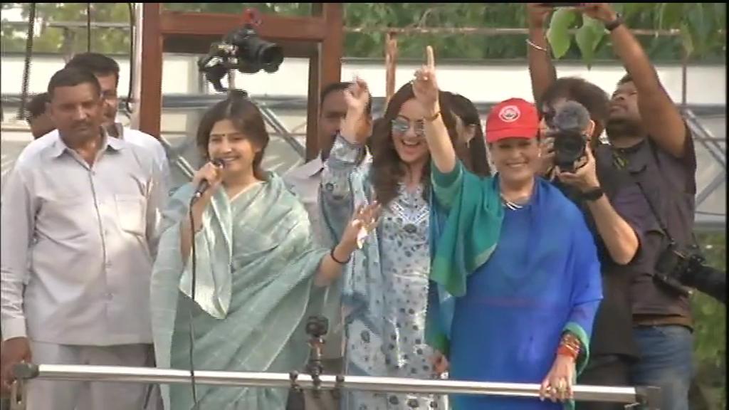 Sonakshi was accompanied by her brother Kushh Sinha as they campaigned for their mother. Poonam Sinha was also present along with SP MP Dimple Yadav.