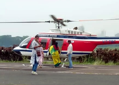 The Election Commission's flying squad conducted a check on the helicopter for NCP MP Supriya Sule at Mahalaxmi Race Course helipad on Friday.
