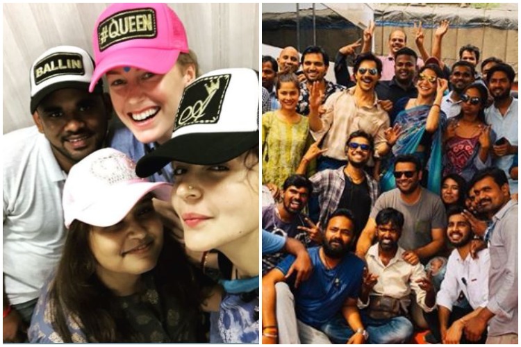 Anushka took to social networking site Instagram to share a pic. She captioned it as, “Moment wid D crew last day on Delhi schedule of Sui Dhaaga.”
