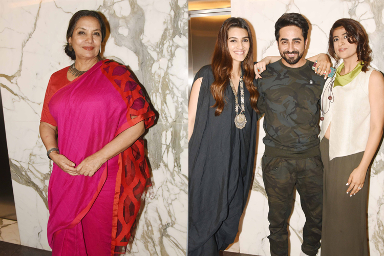 Bareilly Ki Barfi starring actors Ayushmann Khurrana, Kriti Sanon and Rajkummar Rao is all set to hit the screens, this Friday and some Bollywood celebs got the opportunity to attend the special screening of the film. Along with the cast of Bareilly Ki Barfi, veteran actress Shabana Azmi and many others were spotted at the event. The trailers and songs of the film were well received by the audiences. Here are some of the pictures from the event.