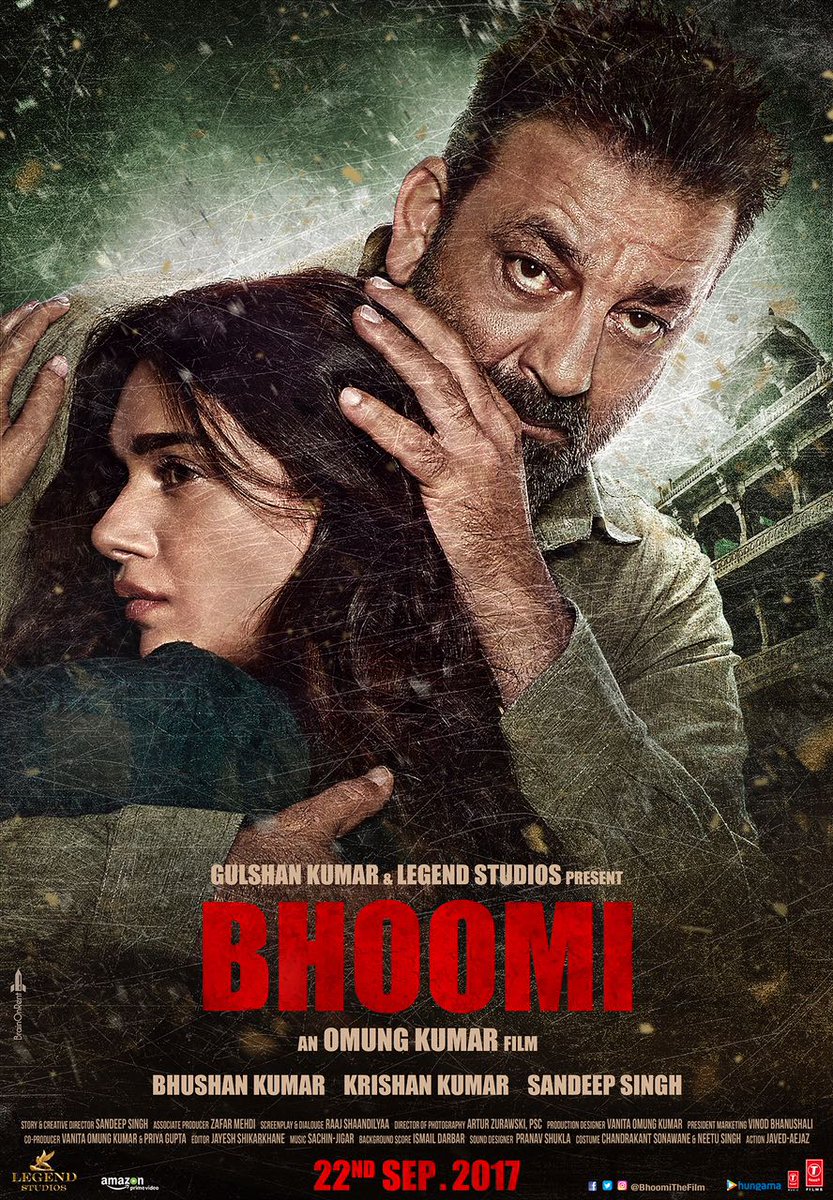 Bhoomi is based on sensitive and emotional issue and showcase the relationship of a father and daughter where Aditi Rao Hydari will be seen playing the role of a daughter and Sanjay Dutt will be seen playing the role of a father. In the posters being released earlier, Sanjay Dutt was seen smeared with blood all over and in this poster, we can say that there is a sense of fear between the two actors but it also shows the pure and caring relationship between the two.