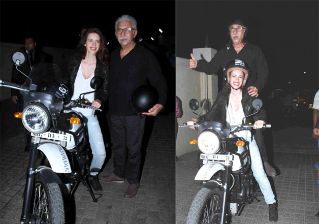 While Kalki was riding the bike, Naseer was a gleeful pillion and they both were smiles all time. Interestingly, the veteran actor was also seen doing some stunts on the bike.