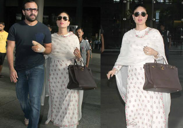 Dressed in white plazo pants and kurti, the to-be-mommy looked utterly gorgeous and the glow on her face was unmatched. On the other hand, husband Saif was dressed causally in a t-shirt and denim jeans.