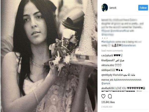 Despite being busiest of actors, Shah Rukh Khan always finds time to check his closed ones’ Instagram posts. This morning he stumbled upon a picture of Smriti Irani’s step daughter, Shanelle.