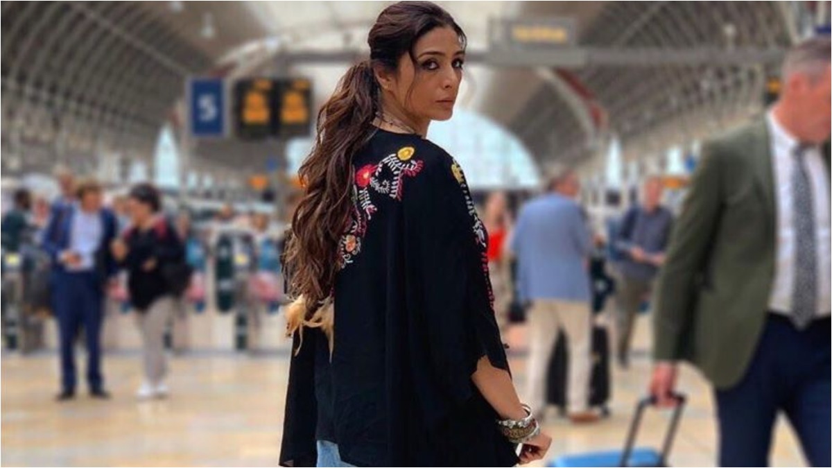 Bollywood actress Tabu is the leading lady of Nitin Kakkar's directorial Jawaani Jaaneman. The film marks the debut of Pooja Bedi's daughter Alaia Furniturewalla and will show Tabu romancing Saif Ali Khan. The lady is off to London where the shooting of the film is on these days. She shared her look from the film on her social media account in which she was seen wearing long printed black shrug paired with baggy pants and yellow boots.