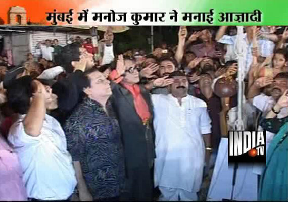 Mumbai, Aug 15 : Bollywood's 'Bharat' Manoj Kumar went to Ghatkopar at the stroke of midnight and unfurled the Indian national tricolour to celebrate the 65th anniversary of India's independence.