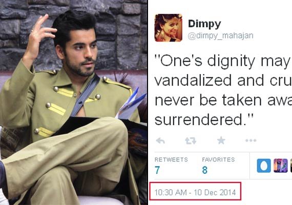 Now, what the tweet holds and what chemistry does Rahul and Dimpy shares is something we would like to delve later into. For this moment, we are more concerned to know that is Dimpy Mahajan or any other current Bigg Boss 8 housemate for that matter, allowed to use social media inside the house?