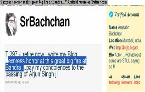 While the fire broke late evening on Friday, March 04, 2011, most Bollywood stars got to know of the news through the electronic media and Twitter. Other Bollywood stars also expresses their solidarity. Actor Arshad Warsi wrote, “My heart goes out to all the victims of the fire in Bandra… What an unfortunate event…”