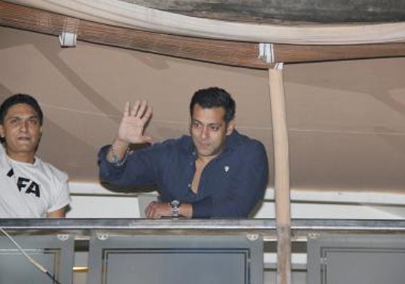 Salman stood on his first floor balcony and waved to the large crowd of fans gathered put side his house.