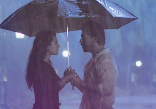 As an added perk to the fans of the couple, they have also tried to recreate the veteran Raj Kapoor and Nargis' iconic umbrella act. In the aforementioned scene SRK is seen holding an umbrella just like Raj Kapoor did in the song ‘Pyaar huwa inkar huwa..' while Kajol, drenched in rain, is looking in his eyes with intense love.