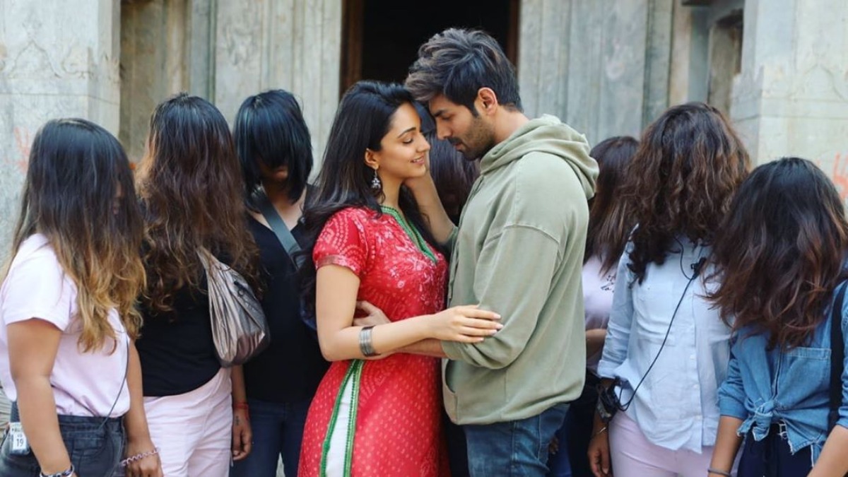 Actors Kartik Aaryan and Kiara Advani, who are currently shooting here for their upcoming film "Bhool Bhulaiyaa 2", shared a photograph from the film's set. In the image, Kartik and Kiara can be seen looking at each other, while they are surrounded by several crew women with their hair covering their faces. He captioned the image: "Pyaar mein itne bhi andhe mat ho jao, Ki Chudail bhi na dikhein... #BhoolBhulaiyaa2... (Don't be so blinded in love that you don't see the witch)."