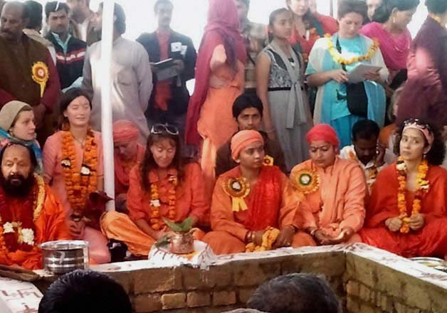 Manisha Koirala dressed like a sadhvi in saffron clothes performed the 'havan' along with the religious rituals.