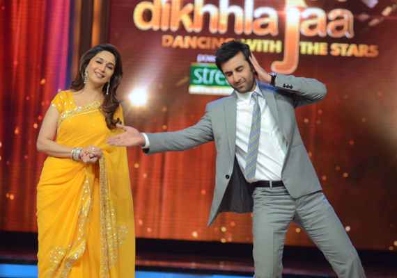 Ranbir paid a visit to the sets of daance reality show "Jhalak Dikhhla Jaa 5" to promote his forthcoming release "Barfi!". There was no way he could have missed the chance to match steps with the dancing diva.